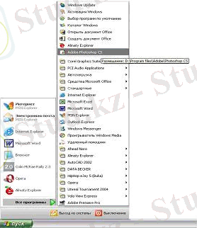 - Енді Adobe Photoshop CS қатарына меңзерді қойып тышқанды сырт еткіземіз: