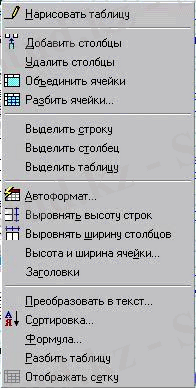 Таблицаны Меню: Таблица=>Добавить таблицу команда арқылы жасау