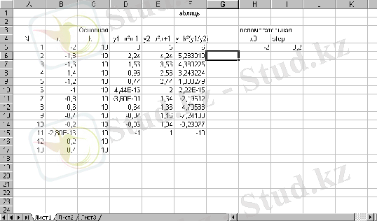 - Осы тәрізді етіп Е бағанасын у2=xҚ+1 функциясының мәндерімен толтырамыз.