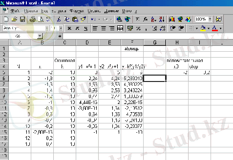 4. Ары қарай жұмысты жалғастыру үшін, бұрынғы сандық мәндерді өз қалпына келтірейік: x0=-2; step=0, 2; k=10.