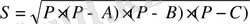Мұнда A, B, S-үшбұрыштың тараптары мына формулалармен айқындалады: