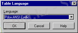 Language тізімінен пайдаланылатын драйвер таңдалады. Тізімнен қажетті драйверді таңдау қажет, кириллица әріптері үшін бұл - Pdox ANSІ Cyrіllіc драйвері. Біз де өз мысалымызда осы драйверді пайдаланамыз.