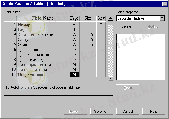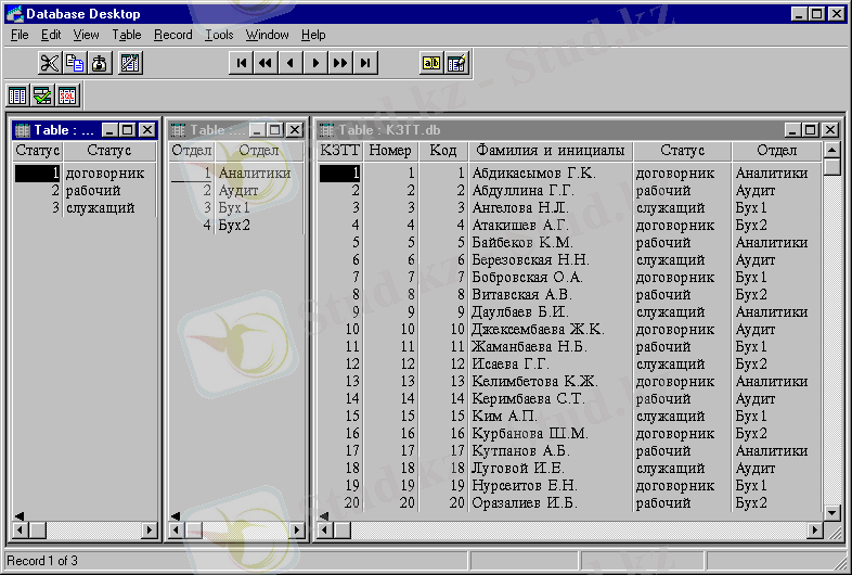 Delphi (Database Desktop) жүйесінде Paradox форматы бойынша мәліметтер базасын жобалау