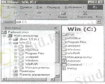Файлдардың көшірмесін алу не орнын ауыстыру кезінде сол жақ терезеде керекті каталог (не бума) көрініп тұруы тиіс. Ол үшін дискіні таңдап алып, тышқанды екі рет шертсек, оның құрылымы ашылған күйде болады және осы тәсілмен бумаларды да тізбектей ашып, керекті мәлімет алынатын каталог құрылымын бейнелей аламыз.