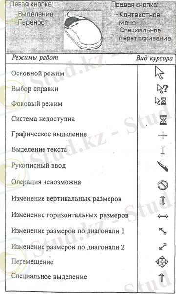 Бiз тышқанның көмегiмен Windows және оның қосымшаларының жұмысын басқарамыз: кез келген операцияны орындауға немесе орындамауға команда беремiз, фигуралар саламыз немесе оның фрагментiн ерекшелеймiз, ерекшеленген мәтiн фрагментiн немесе оның бейнесiн басқа позицияға тасымалдаймыз. Тышқанды столда(немесе кiлемшеде) әртүрлi бағытта жылжыта отырып, тiлсызықты экранның кейбiр позициясына орнатуға болады (басқа сөзбен айтқанда, тiлсызықпен нақты элементтi көрсету), содан кейiн тышқанның сол немесе оң батырмасын басып, машинаға сигнал жiберу.