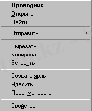 Тыщқанның оң батырмасын басу, ерекшеленген объектiң контекстiк менюiн бейнелейдi. Мысалы, кез келген файл үшiн бұл менюде ашу, көшiру, жою командалары бар.