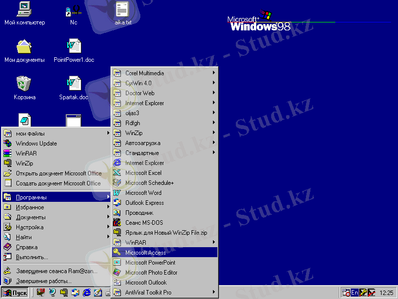 1. WІNDOWS-98-дің тапсырмалар панелінде тұрған қосуды басамыз.