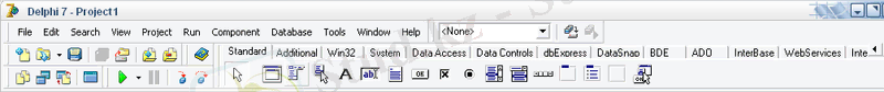 Экранның жоғарғы бөлігінде негізгі терезе орналасады. Онда құрал-саймандар тақтасы (Standard. View. Debug және Custom) және компоненттер палитрасы орналасады. Негізгі терезе Delphi 6 ортасы жабылмайынша ашық тұрады. Негізгі терезені жабу арқылы Delphi 6 -ны жабамыз.
