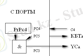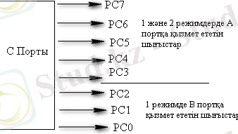 Егер А және В порттары бір режимге программаланса, онда С порты қызметтік сигналдарды қалыптастыруға, сонымен қатар қалып-күй порты ретінде қолданылады.