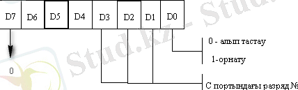 Мысал: А портын 0 режиміндегі енгізу, В портын 0 режиміндегі шығару, РС4 . . . РС7-ні - 0 режиміндегі шығаруға, РС0 . . . РС3-ті -0 режиміндегі енгізуді программалау керек дерлік.