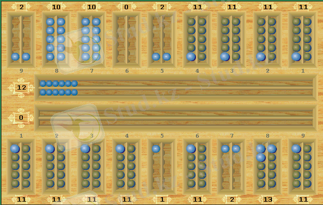 “Тоғызқұмалақ” ойыны басталар кезде құмалақтардың орналасу позициясы мынадай болады: