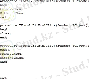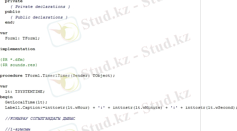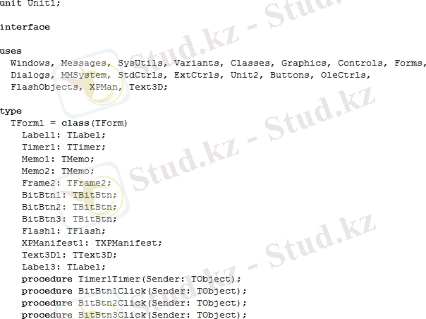 - procedure Form1. Timer1Timer -таймер1 компонентін сипаттау бөлімі;