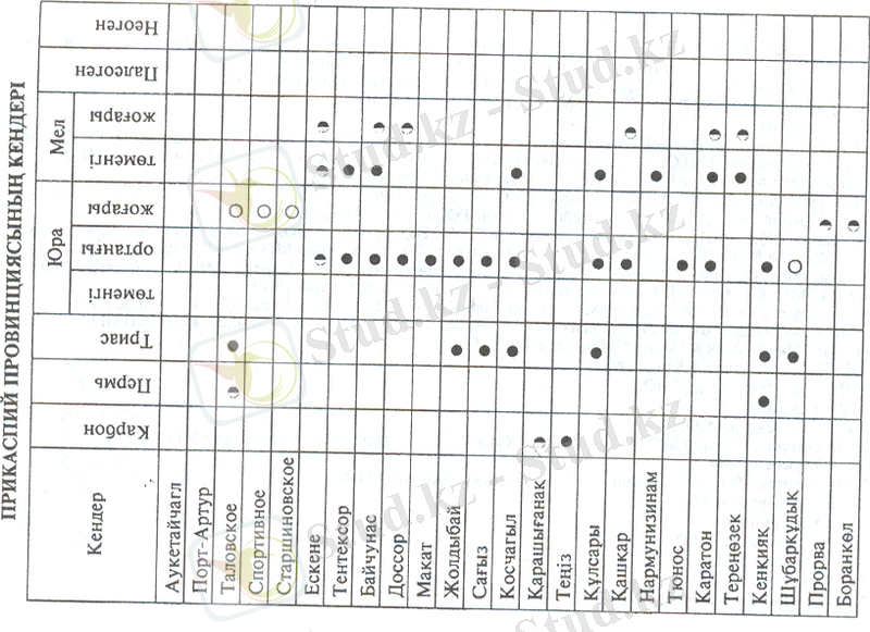 27 - Боранкөл; 28 - Прорва; 29 - Копа; 30- Акжар, 31 - Кенкияк; 32 -Кұмсай; 33- Шұбарқұдық; 34- Жаксымай; 35 - Таловка;