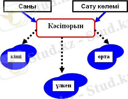 Көлеміне байланысты кәсіпорындар, 1 - ші суретте көрсетілгендей, қызметкерлер саны мен сату көлемі бойынша кіші, орташа және ірі болып топтасады.