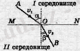 MN екі әртүрлі ортаның шекарасы болсын, мысалы су мен ауа. ОА-түскен сәуле, ОВ-сынған сауле . α- түсу бұрышы, β- сыну бұрышы, v1-бірінші ортадағы жарық жылдамдығы, v2-екінші ортадағы жарық жалдамдығы.