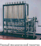 "Принтер" бiрiншi "компьютермен" бiрге жасалды. Бұл девайстардың арғы атасы (ал, өңдеу 1822 жылда басталды ) 1834 жылда пайда болды. Оны ойлап тапқан әйгілі Чарльз Бэббидж болды. Ойлап шығарылған құрылғы Difference Engineнiң (айырма машина ) атауын алды. Оны навигацияда, жобалауда және банктiк iстерде қолданды. Автоматты баспаға шығару қабiлетi бар механикалық компьютер болды. Өкiнiшке орай, сол сияқты жұмыс iстейтiн үлгi ол кездері құрастырылмады, 150 жылдардан кейін ғана шығарыла бастады. Лондондық Ғылым мұражайының қызметкерлерi оның директоры Дорон Суодасының басқаруымен автордың сызбалары бойынша 5 тонна салмақтан тұратын 8000-нан аса бөлшектерiн жинады. Difference Engine қарапайым теңдеудi шешті және қағазға нәтижелерін басып шығара алды.
