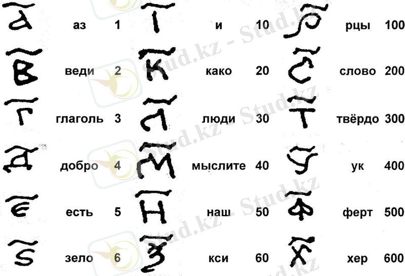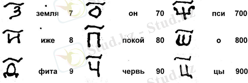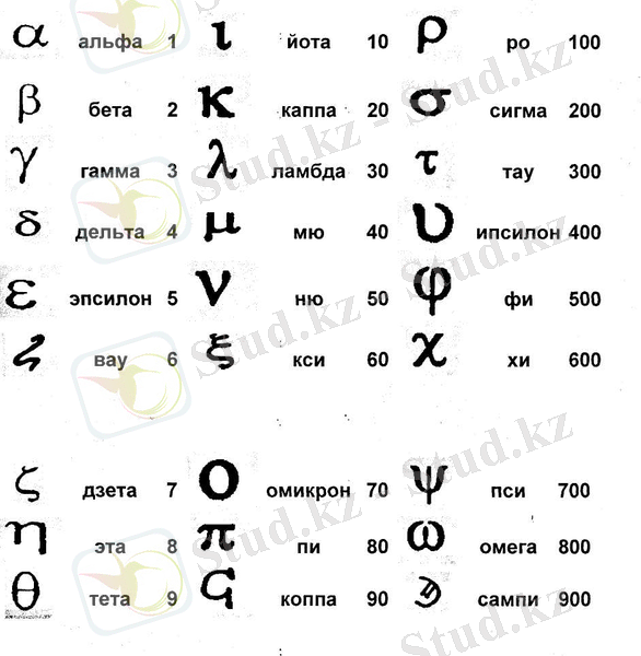 Бұл жүйеде де славяндық жүйедегідей әріп санды жазуда қолданылды. Белгілі бір әріпке бір сан сәйкес келді.