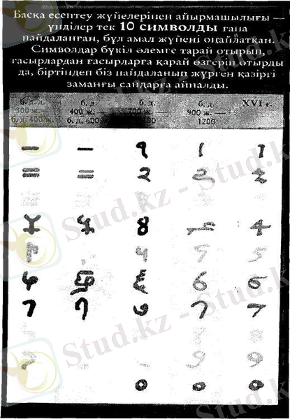 Адамзат тарихында ең ерте қалыптасқан ғылымдардың бірі -математика еді. Математиканың алғашқы бесіктерінің бірі Мысыр елі болды. Адамзат даналығының ойлап тапқан жаңалығы ол- жазу. Қазіргі элем халықтары жазуды жоғарыдан төмен, солдан оңға қарай жазып жүр. Неге? Өйткені олар бүл эдісті соқаның қозғалысынан алған екен. Осы жазудың негізінде пайда болған таңбалардың бірі цифр. Цифр дегеніміз- сөздерді қағаз бетіне қондыру үшін қолданылатын эріптер қандай қажет болса, сандарды да жазу үшін керекті таңбалар. Цифр деген сөздің төркіні арабтың «Әс-сифр» деген сөзінен алынған, ал оның мағынасы - үнді халқының бос орын - «Сунья» деген сөзінің аудармасы екен.