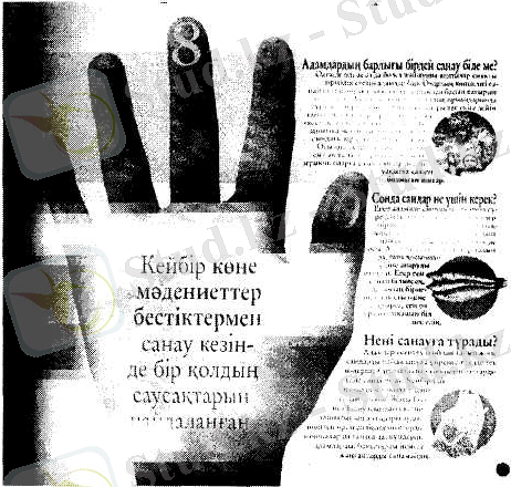 Олардьщ айтуынша осыдан 5 мың жыл бұрын да адамдар сандарды, есептеуді білген екен, бірақ олардың қолданған сандары мен олардың жазылу түрі мүлдем бөлек болыпты. Бірақ жылдан-жылға сандар түрлене келіп біздің қазіргі қолданып жүрген сандарымыз пайда болған. Ол кездегі адамдар үшін сан ұғымының мағынасы кандай болды екен?