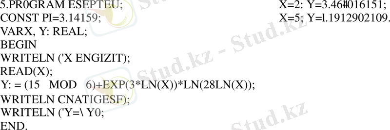 5. PROGRAM ESEPTEU; X=9; N=2; S=1. 333.