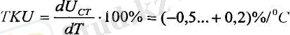 Стабилитронның негізгі парметрлері: сипаттаманың кернеуі тұрақты бөлігіндегі динамикалық кедергісі (R д ) ; кернеудің тұрақты мәніне сәйкес минимал тогы (І ст. min ) ; кернеудің тұрақты мәніне сәйкес максимал тогы (І ст. max ) ; кернеудің температуралық коэффициенті (TKU) . Қазіргі кезде қолданылып жүрген стабилитрондардың тұрақтандыру кернеуі U ст =1 . . . 1000В, минимал тогы І ст. min =1 . . . 10 мА максимал тогы І ст. max =50 . . . 2000 мА, динамикалық кедергісі R Д =0. 5 . . . 200 Ом, ал кернеудің температуралық коэффициенті шамасында жатады.