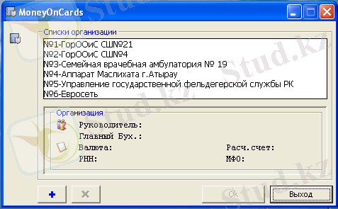Тізімді таңдаған кезде сол тізім туралы кейбір деректер көрінеді: Руководитель, Глав. Бух, Валюта списка, РНН предприятия, Расчет. счет, МФО.