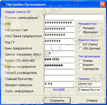 Сурет 4. Ұйымның настройкаларын енгізу терезесі