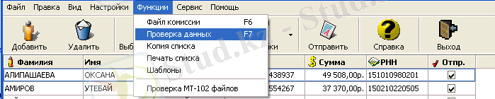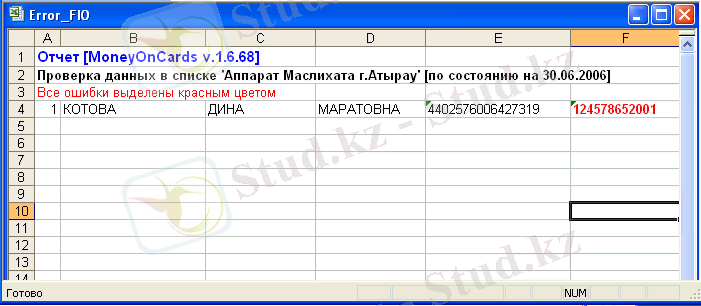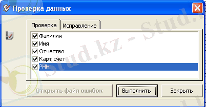 «Проверка данных» терезесінде деректерді тексеру алаңын таңдау қажет. Содан «Начать» батырмасын басу қажет. Тексеру аяқталғаннан соң \TXT\ERROR_FIO. XLS файлы жасалады (Сурет 8) .