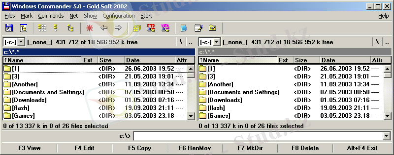 Ең астында Windows Commander-дің кейбір пернелерінің қолданылуын еске түсіретін жол орналасқан.