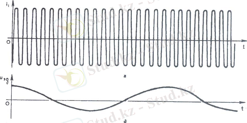 Сондықтан импульстар арасындағы интервалда ток жүктеме арқылы бәрібір әлгі жаққа қарай ағады (6-суреттегі үзік бағдарсызықтар. ) . Әрібір жаңа импульс конденсаторы астыртын зарядтайды. Осының әрқайсысында жүктеме арқылы жиілілігі дыбыстікіндей ток ағады да, тербеліс пішіні хабарлаушы станциядағы диілігі төмен сигналдың пішінін дәлме-дәл дерліктей жыртып береді (9-сурет) .