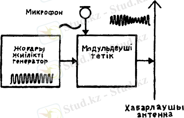 Дыбыс жеткізу үшін осы тербелістерді өзгертеді, яғни басқаша айтқанда, модуляциялайды. Оны жиілігі төмен (дыбыстікіндей) электр тербелістерінің көмегімен жасайды. Мысалы, жиілігі жоғары тербеліс амплитудалық модуляция деп атайды. 2-суретте үш график көрсетілген: а) жиілігі жоғары тербелістердің графигі, осы әкелуші жиілігі деп атайды; ә) дыбыс жиілігіндей тербелістердің, яғни модуляциялайтын тербелістердің графигі, в) амплитудасы бойынша модуляцияланған тербелістердің графигі. Модуляциясыз ең әрі кеткенде, станция жұмыс істей ме, жоқ па соны ғана бақылай аламыз, одан басқа еш нәрсені істей алмаймыз. Модуляциясыз телеграфпен де, телефонмен де, телевизиямен де ешбір хабар беруге болмайды.