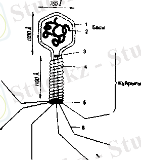 Т-жүп фагының күрылысы. оны баспсн жалгастырады 1 - белок; 2 - ДНК; 3 - куыс; 4 - кдбыгы; ЖӘНС СОЛ Каналда ДНҚ-5 - гексогональдык табакша; б - күйрық