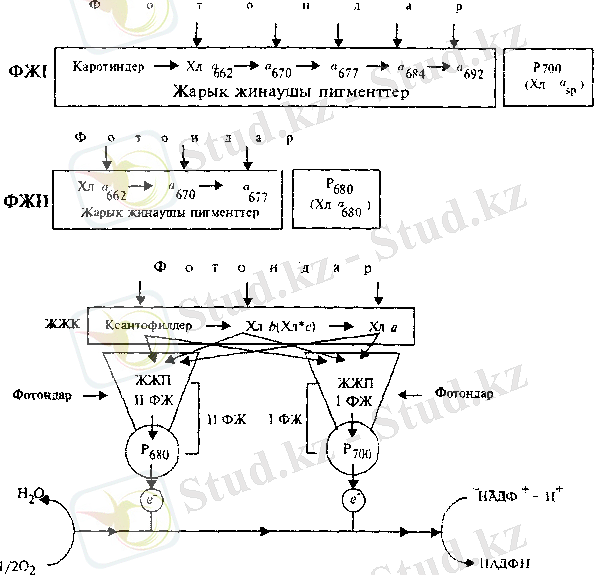 I, II ФЖ - фотожүйелер, ЖЖК - жарық жинаушы комплекс.