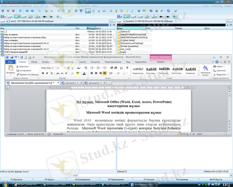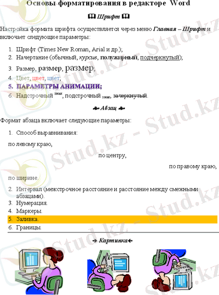 - Microsoft Word мәтіндік процессорымен жұмыс