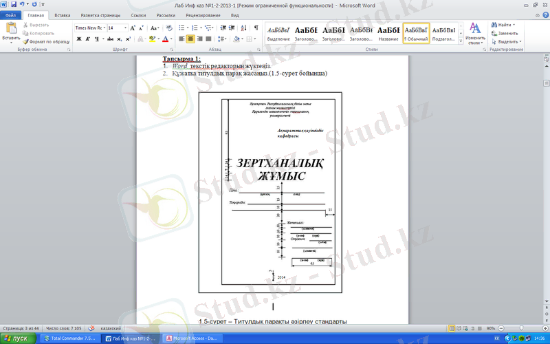 - Құжатқа титулдық парақ жасаңыз. (1. 5-сурет бойынша)
