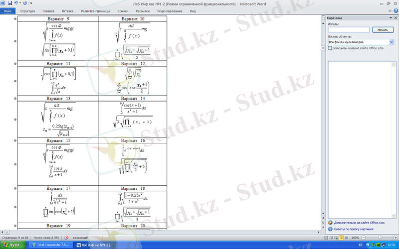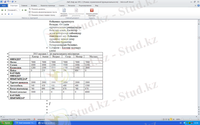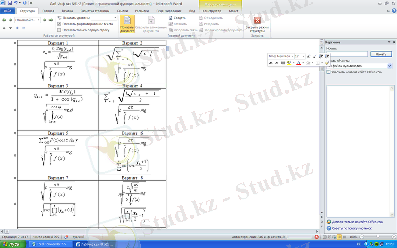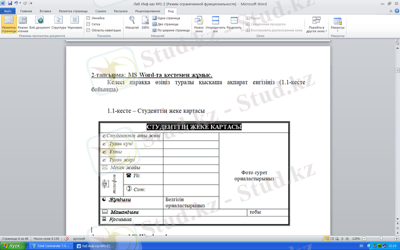 Зертханалық жұмыс №1: Microsoft Word пакетімен жұмыс істеу