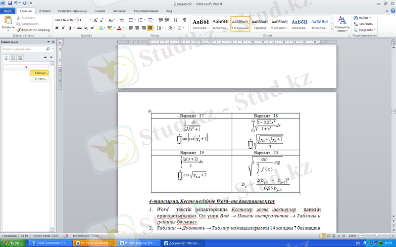 3-тапсырма: MS Word-та формула жазу