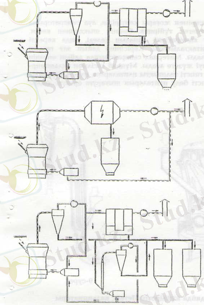 1-гипс тасының шанағы; 2-конвейер; 3-жақты ұсақтағыш; 4-балғалы диірмен; 5-элеватор; 6-қоректендіргіш; 7- жылу бергіш; 8-сепаратор; 9-12-шаң жиналатын қондырғы; 10-дайын зат шанағы; 11-желдеткіш; 13-аэрожолақ; 14-шарлы диірмен.