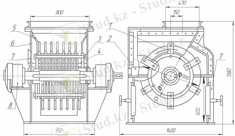Сурет 2. 5 кептіру-ұнтақтау агрегатының схемасы:
