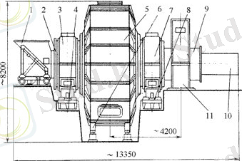 Ұсақтауға жататын материал таспалы конвейермен немесе қоректендіргішпен диірменнің тиейтін 1 таспа ағуына беріледі, ол 2-ші толық тиейтін цапфаға төгіледі, цапфаның ішінде орналасқан құбыршнек көмегімен материал диірмен барабанына тасымалданады.