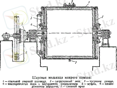 Ылғалды ұнтақтауға шар диірмені . Барабанның ішкі беті массаның металмен ластануын болдырмас үшін силекспен қапталған. Тегістеу денелері-диаметрі 30-90 мм, жоғары глиноземді (уралитті), цирконий және цилиндр түріндегі басқа денелер.