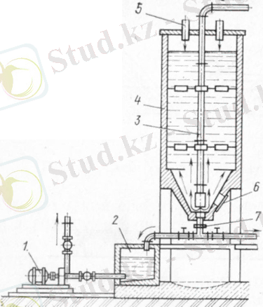 1-сорғы; 2-шұңқыр; 3-құбыр; 4-резервуар; 5-Жоғарғы шлам құбыры; 6-люк; 7-Ысырма