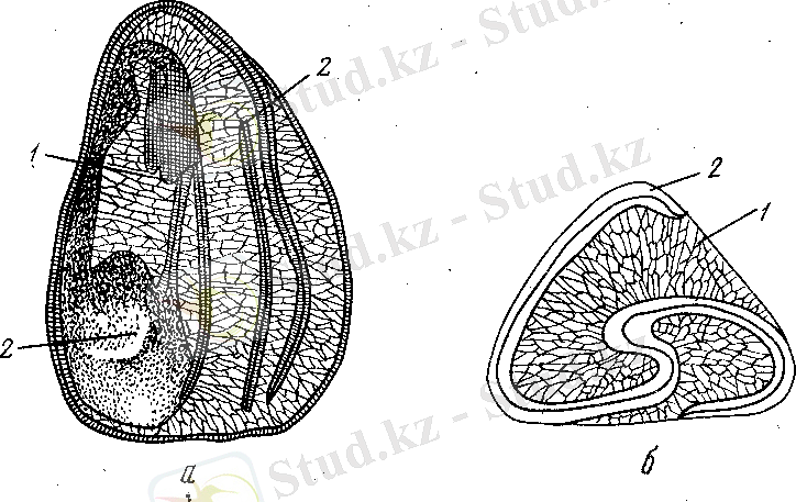 2. 3. -сурет. бұршақ ұрығының құрылысы: қабықшамен (а), қабықшасыз (б)