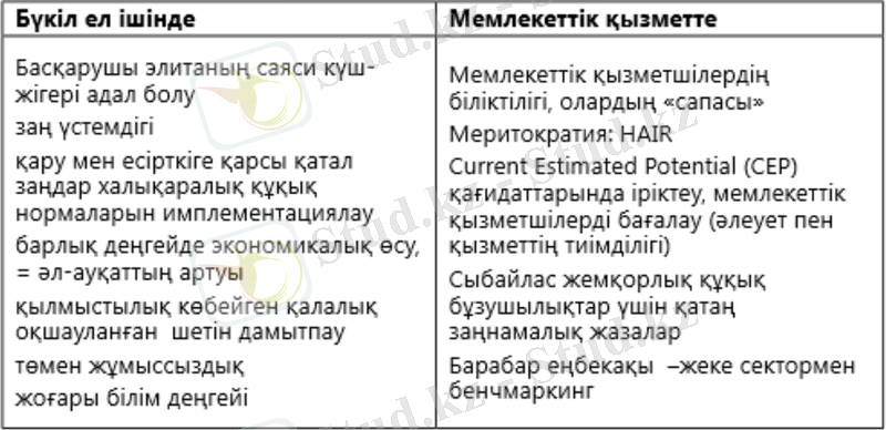 - қазіргі сыбайлас жемқорлыққа қарсы заңнаманы құру;