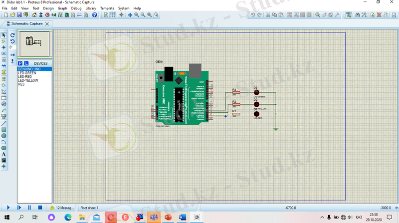 Зертханалық жұмыс №1: Proteus ортасында Arduino арқылы бағдаршамды басқару