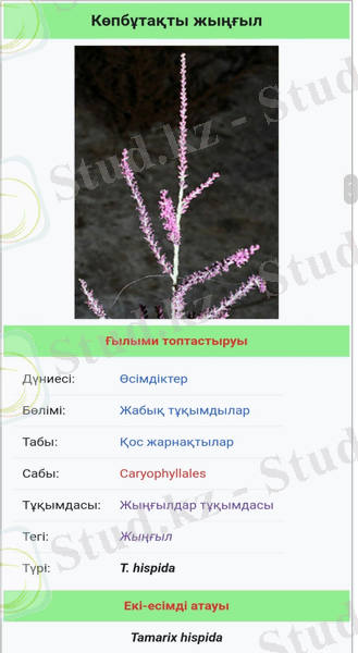 Жыңғылдар тұқымдасы (Tamaricaceae): Қазақстандағы түрлері, морфологиясы және қолданылуы
