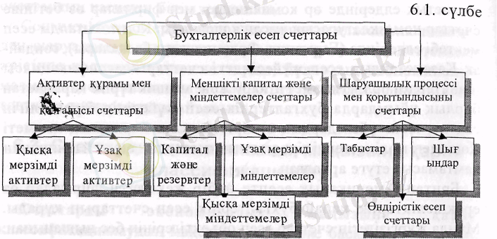 Экономикалық мазмұнына қарай счеттардың классификациялануы төмендегі 6. 1. сүлбеде берілген.