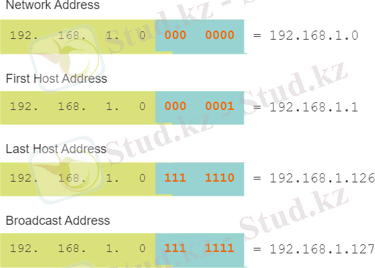 5 сурет. 192. 168. 1. 0/25 ішкі желі үшін мекенжай ауқымы