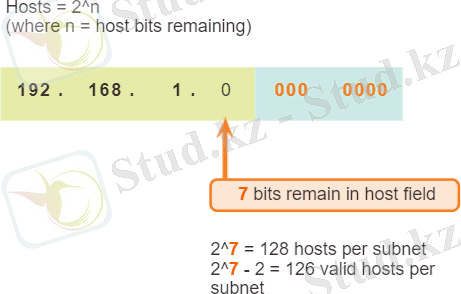 7-суретте көрсетілгендей 192. 168. 1. 0/25 мысалы үшін есептеу келесідей болады: