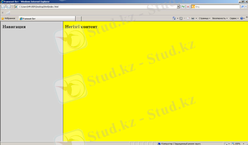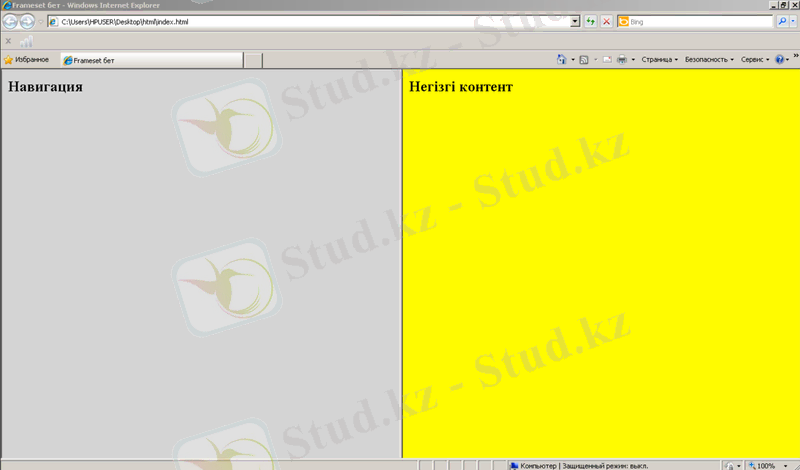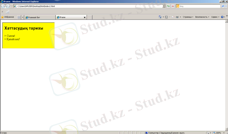 Сурет 68. ‘border’ атрибутын нөлге тең Frameset беті